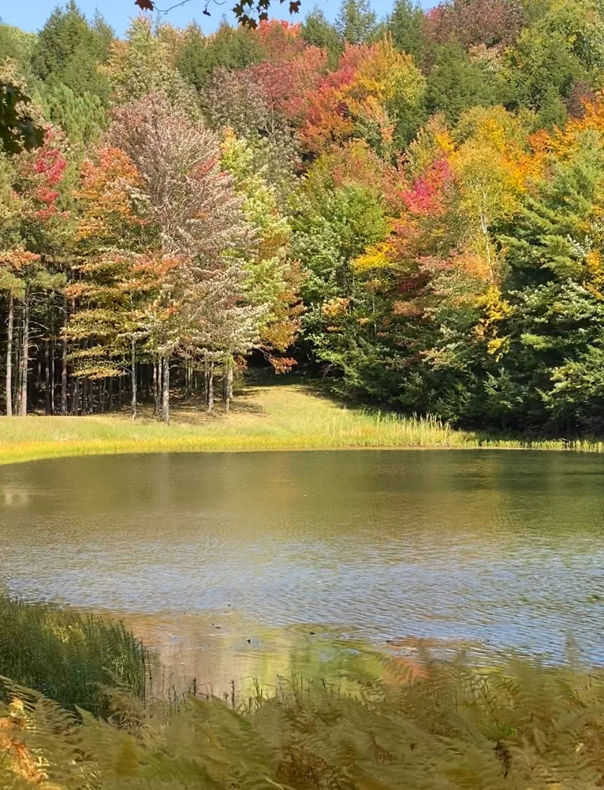 Hiking trails and remnants of old logging roads wind throughout the property. Wildlife thrives here: owls call from treetops, deer and bear move quietly through the forest, and bobcats slip along rocky outcrops. A perfect evening is listening to the sounds of nature as a full moon rises over the mountain and reflects across the pond.