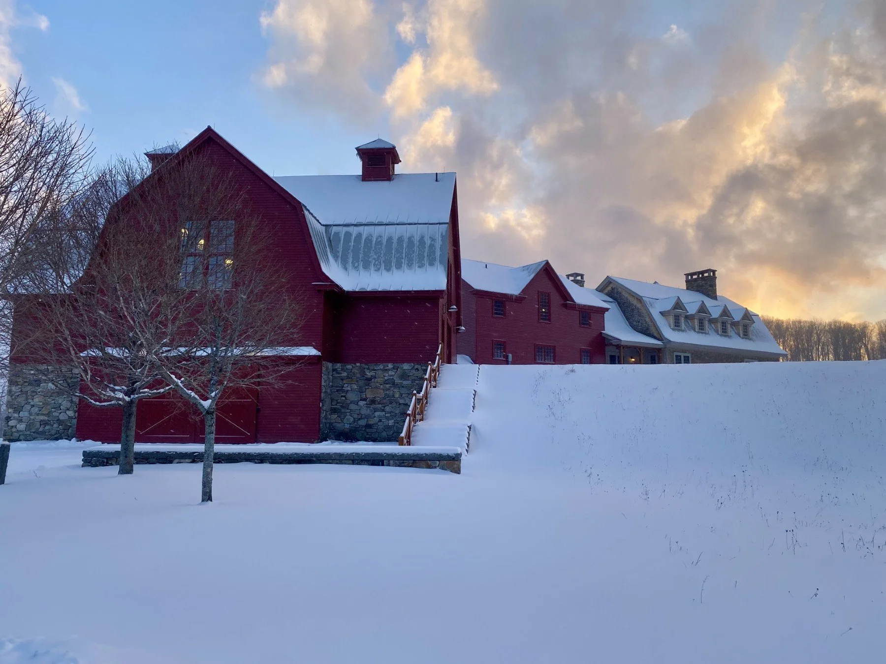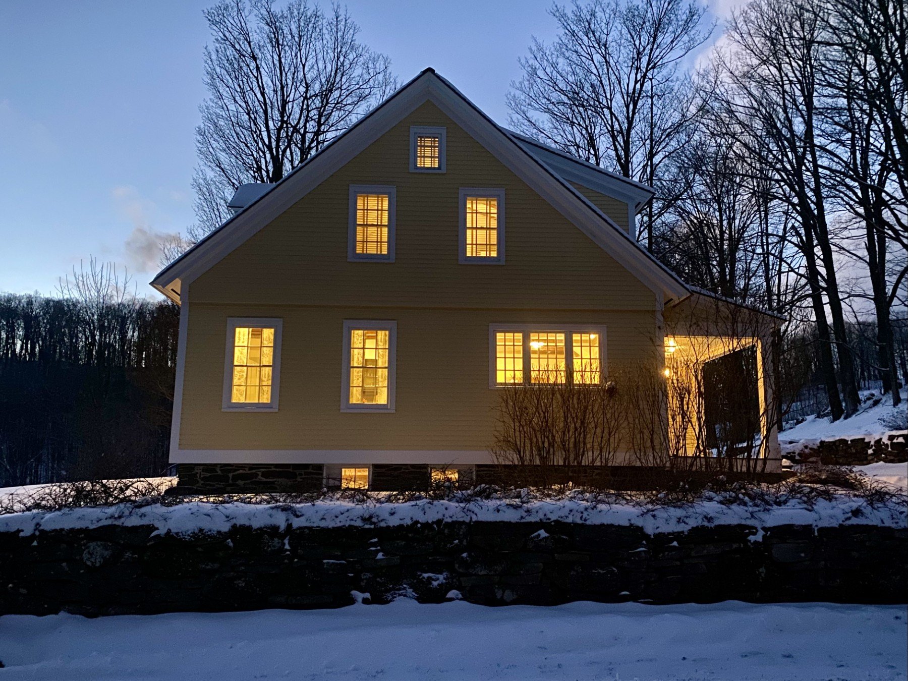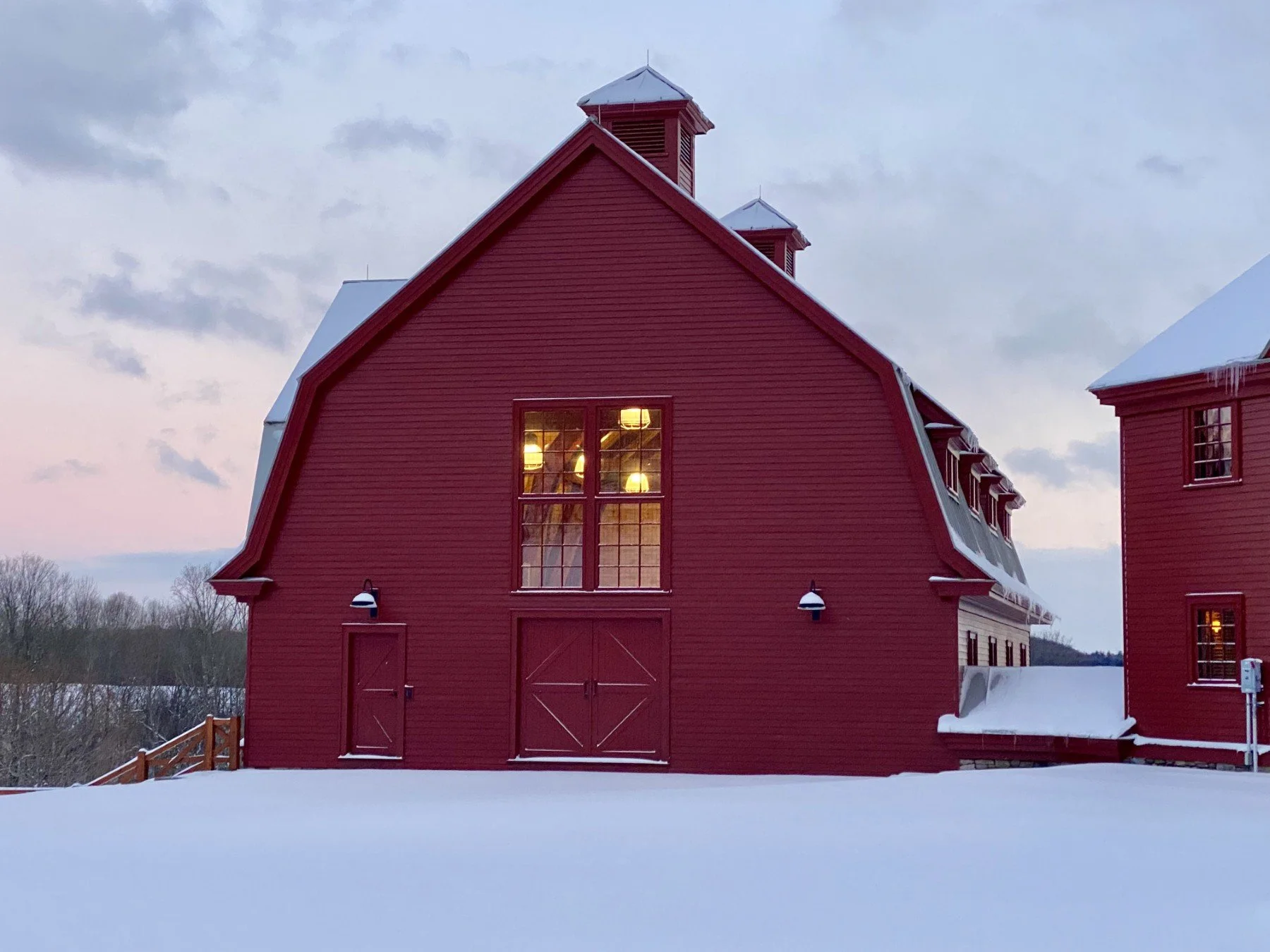 After passing through the gated entrance and winding up the hill, you will be greeted by the farmstead’s original late-1700s cape and barn—both meticulously rebuilt and updated with exposed hand-hewn beams and modern mechanicals. Reimagined as a two-bedroom, two-bath guest house and a party barn overlooking the swimming pond, these classic hill-farm structures reflect the areas enduring historic charm.
